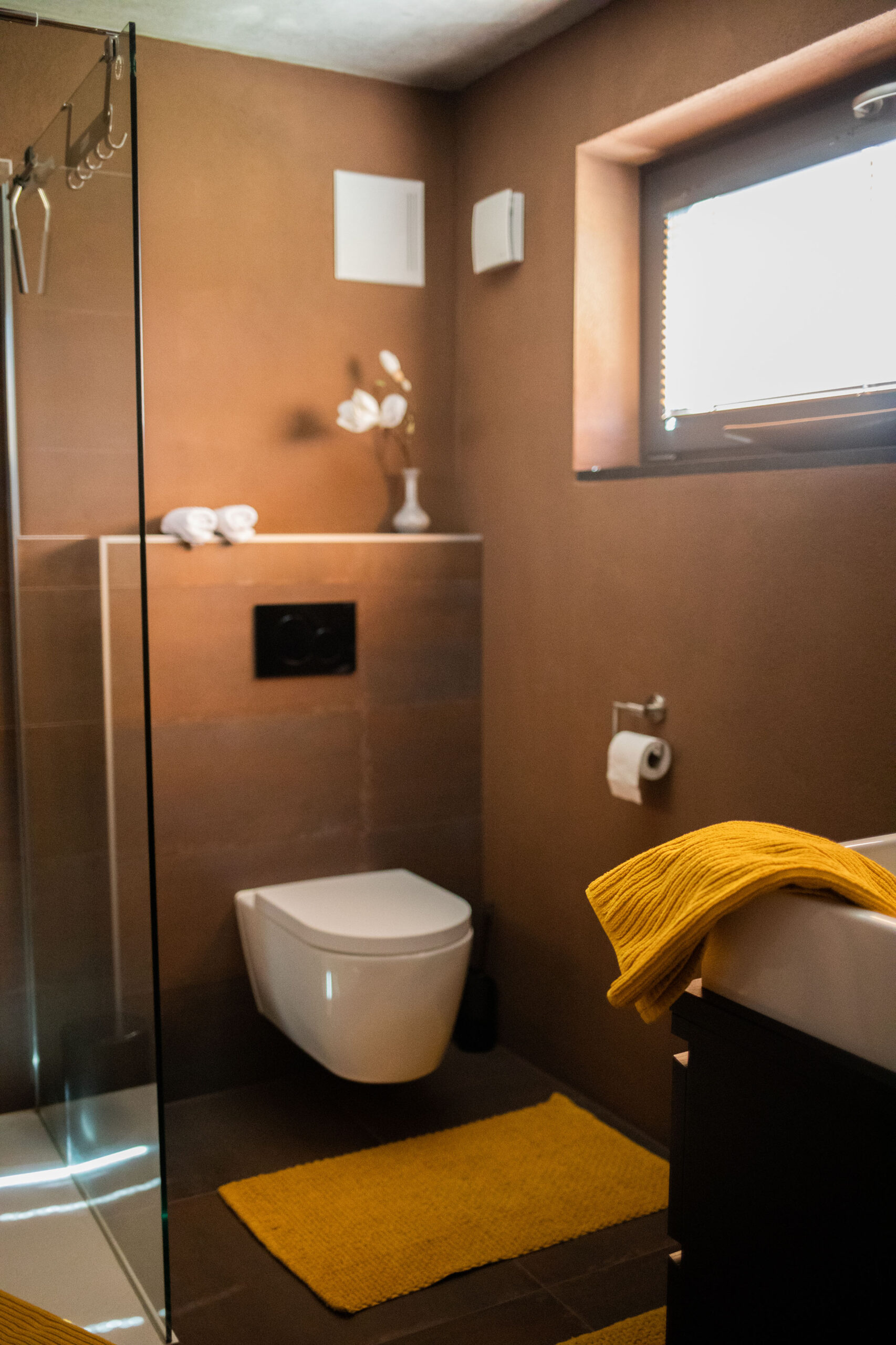 Sanitär: Badezimmer mit Fenster, WC und Dusche