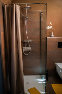 Sanitär: Badezimmer mit Fenster, WC und Dusche