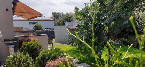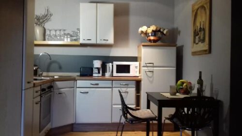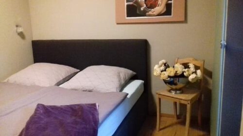 Die Ferienwohnung verfügt auf 35qm über einen Wohnbereich mit ausgestatteter Küchenzeile, Essecke, Schlafcouch und Fernseher. Der Fußboden ist mit Echtholzparkett in Eiche ausgelegt. Das Schlafzimmer ist mit einem Boxspringbett für 2 Personen ausgestattet. Im Badezimmer finden Sie eine ebenerdige Dusche, WC und Fön. Zudem gelangen Sie durch das Badezimmer ins Ankleidezimmer. Die Betten sind bezogen bei Anreise, Handtücher vorhanden. Auf der großen gemütlichen Terrasse mit Gartenmöbeln können Sie den Tag ausklingen lassen.
